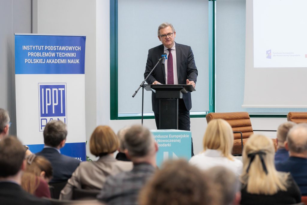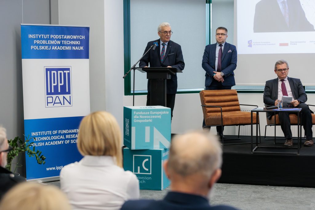 Wydarzenie otworzył Dyrektor IPPT PAN prof. dr hab. inż. Tadeusz Burczyński, który podkreślał jak ważne jest dla rozwoju polskiej innowacyjności, aby nauka i biznes współpracowały ściśle ze sobą: “Naszą misją jest tworzenie przestrzeni, w której badania i przemysł mogą się przenikać, prowadząc do realnych korzyści społecznych i gospodarczych”.