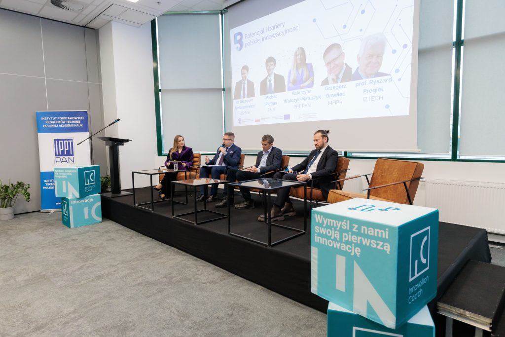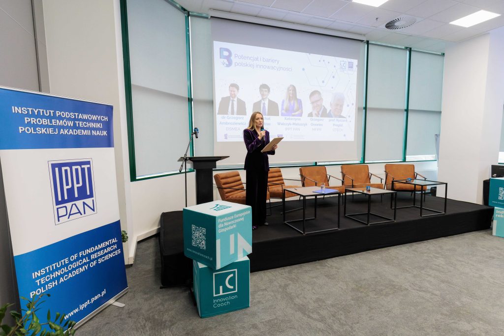 Dyskusję moderowała Katarzyna Walczyk-Matuszyk – zastępczyni kierownika Centrum Projektów Badawczych UE w IPPT PAN, kierowniczka Innovation Coach.