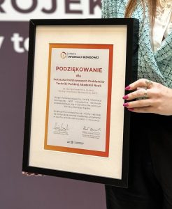 Podczas spotkania ogłoszono, że IPPT PAN – Instytut Podstawowych Problemów Techniki PAN zostało wyróżnione jako instytucja trwale wspierająca rozwój projektu “Strefy Informacji Biznesowej WPT”. To doniosłe wyróżnienie było tematem licznych komplementów skierowanych w stronę projektu Innovation Coach oraz zaangażowania całego zespołu.
